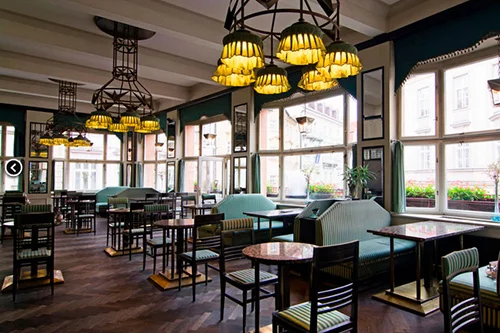 The Koruna Palace is an example of geometric Art-Nouveau, the famous Hotel Europa on the other hand exemplifies traditional floral Art-Nouveau. Other gems of Art-Nouveau design include the Municipal House. This tour will also take us to the famous Cubist House of the Black Madonna.
