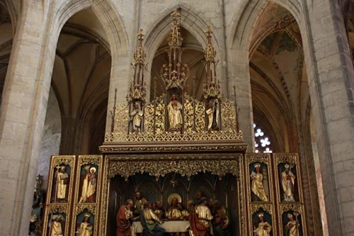 Then we proceed to Kutná Hora, a city that was the largest and most powerful in the Czech Kingdom in the 13th century. This was a time when one of the richest silver mines in Europe operated here. This exceptional development of the city also enabled the construction of the cathedral of St. Barbara, the patron saint of miners. Personally, the beauty of this daringly curved star vault never ceases to amaze me. Neither does the beauty of the surprisingly Art-Nouveau stained glass and medieval frescoes. Their authors sought inspiration not only in Biblical themes, but also in the everyday life of the miners, something absolutely unusual at the time. After our visit to the cathedral, we will explore this originally medieval city with its former Jesuit College that is now an important art gallery named GASK, as well as the St. Jacob church and the famous Italian Court.